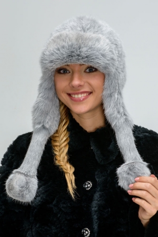 Описание: Классическая форма шапки - ушанки с отворотом, на концах удлиненных ушек помпоны.