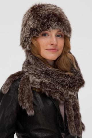 Описание: классическая шапка с удлинёнными ушами (шарф), на верху 2 кисточки (длина каждой 12 см). Длина "ушек" 60см. На эластичной сетке, без подкладки.