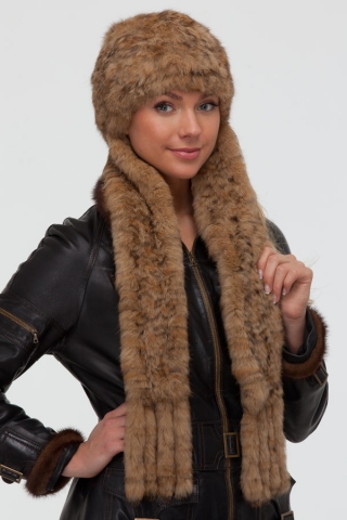 Описание: Классическая шапка с удлинёнными ушами (шарф), на верху 2 кисточки (длина каждой 12 см). Длина "ушек" 60см. На эластичной сетке, без подкладки