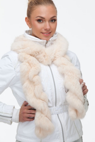 Описание: Шарф исполнен в виде закрученной спирали, напоминающей цепочку. Длина 200 см, ширина 10 см