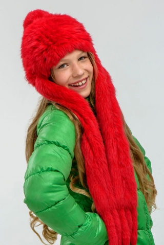 Описание: Яркая шапочка-шарф. Длина ушек 55 см, Украшена помпоном. Рекомендуемый возраст 4-5;7-10 лет.