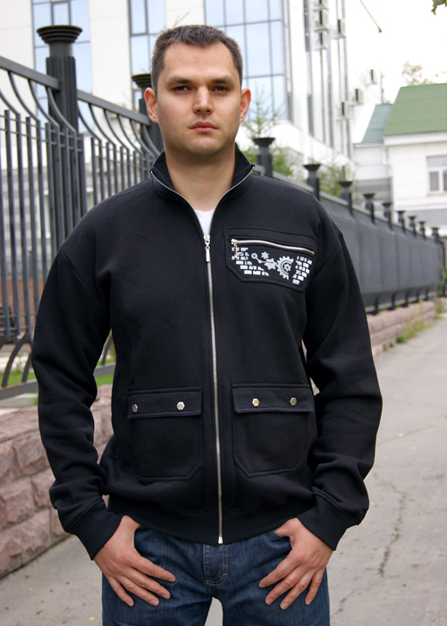 Мужская толстовка чёрного цвета с воротником "стойка". Манжеты на рукавах и по низу изделия обладают повышенной износостойкостью. Эта толстовка разработана специально для мужчин, ценящих удобство и практичность.