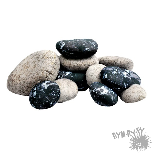 В набор подушек <<Галька>> входит 12 камней разных размеров - 15, 23, 33 см.