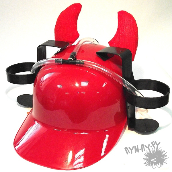 Прикольный и оригинальный подарок. Достаточно одного взгляда на эту Пивную каску Буйвол, чтобы появилась улыбка. А Что будет, когда устройство займет свое место на голове? Инструкция проста: вставьте банки или стаканы с пивом (кстати, напиток может быть любой; главное, чтобы он вам нравился) в специальные держатели по бокам каски, опустите туда трубку и пейте!