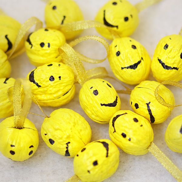 Под ярким смайликом замаскирован орех, но не простой, а орешек с пожеланием, которое вы можете придумать сами.