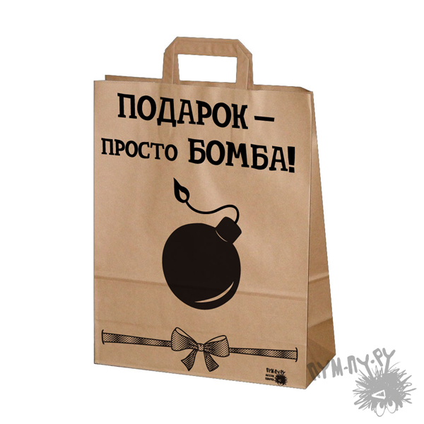 Купите подарочный крафт-пакет "Подарок - просто БОМБА" и дарите прикольные подарки в оригинальной упаковке.