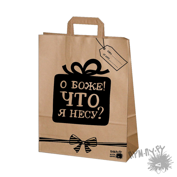 Вы сами в восторге от подарка, который несете в подарочном пакете "О Боже, что я несу?"? А может вы совсем не курсе, какой именно презент в этом пакете? Либо именинник в шоке от вашей поздравительной речи? В любом случае, эмоции явно зашкаливают.