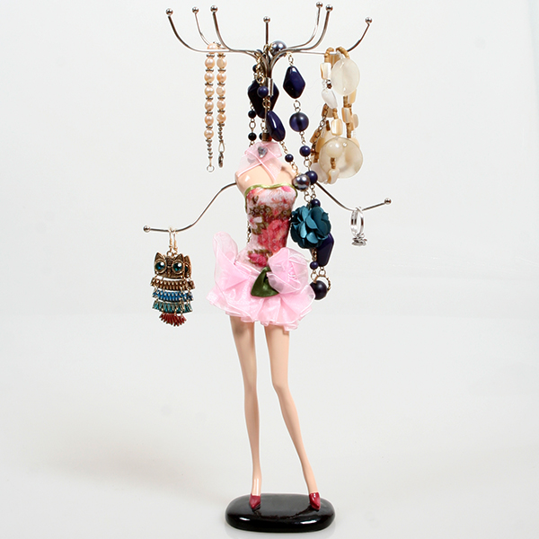 В гардеробной каждой девушки, по мнению знаменитой француженки Коко Шанель, должно находится маленькое черное платье. А на тумбочке, по мнению пумпурушников, должна быть подставка для украшений "Розовое платье". Именно эта портативная подставка под ювелирные украшения и бижутерию поможет навести порядок среди разнообразия серьг, колец и кулонов. Сделать выбор в пользу украшения перед важным событием или обычной прогулкой весьма просто, ведь они теперь все на виду. Подставка для украшений манекен - симпатичный аксессуар, который станет отличным подарком для девушки на любое торжество. Современные барышни придут в восторг от такого дивного подарка!