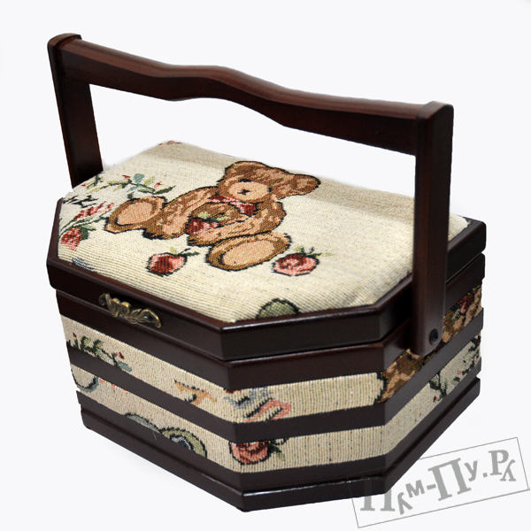 Женщины частенько покупают всякие полезные мелочи, а потом любят складывать их в красивые коробочки! Вот достойная представительница - вместительная шкатулка из дерева с гобеленовой обивкой снаружи и бархатной внутри. Она оснащена двойным дном и ручкой для удобного переноса дорогих драгоценностей.
