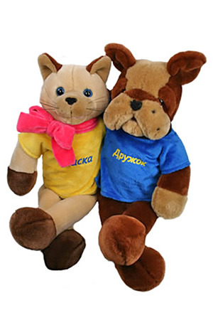 Игрушка, поющая песню , станет теплым подарком от всей души для друга или просто милым знаком внимания для людей любого возраста. Поющая игрушка напомнит о вечных жизненных ценностях и никого не оставит равнодушным. Непримиримые враги в реальности, плюшевые кот и собака символично заявят о том, что все возможно!