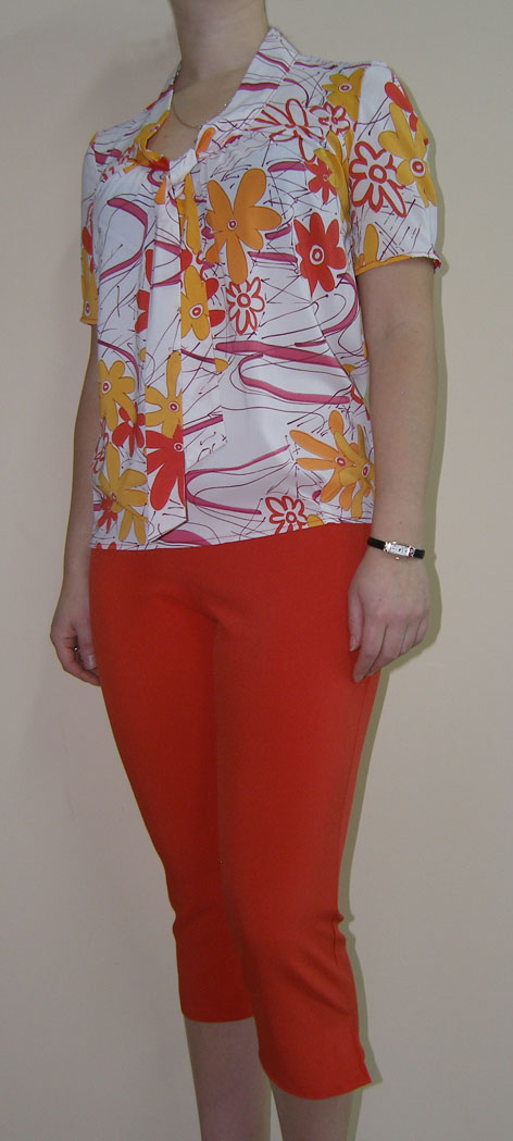 Ткань: блузка - шифон, капри - тонкая, слегка стрейчевая, костюмная