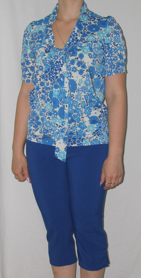 Ткань: блузка - шифон, капри - тонкая, слегка стрейчевая, костюмная.