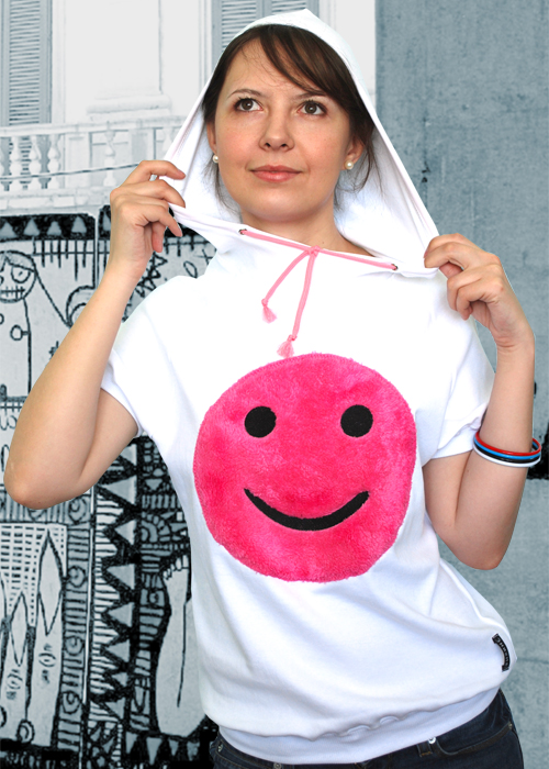 Смайлик сделан из мягкого материала с высоким ворсом. Глазки и ротик сделаны вышивкой.