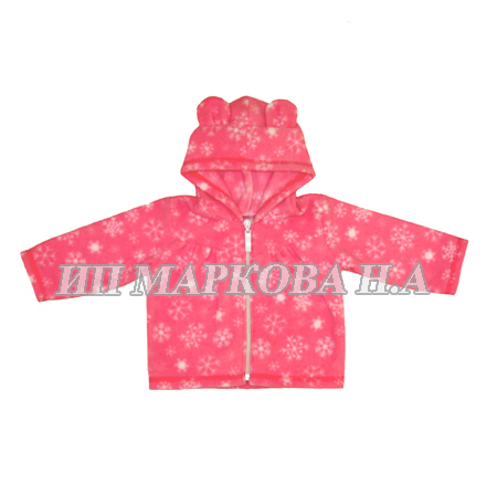 Теплая мягкая кофточка для малышей из набивного флиса, капюшон с ушками, на молнии