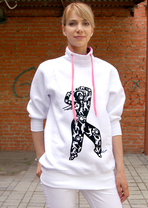 Freestyle – это яркая необычная белая толстовка с оригинальным бархатным рисунком. Модель с воротником «стоечка» со шнурком, c рукавами длины три четверти. Воротник внутри отделан мягкой тканью в яркую полоску. Низ изделия и манжеты на рукавах сделаны из эластичной ткани - кашкорсе, это позволяет толстовке отлично сидеть на фигуре. Толстовка внутри имеет мягкий приятный для тела начес, что отлично подходит для холодной погоды. Ткань хорошо пропускает воздух и позволяет коже дышать. Эта модель свободного покроя хорошо подойдёт как для активного отдыха, так и для повседневной жизни. В ней вы будете особенной, ведь белый цвет освежает, возвышает, вдохновляет, притягивает. А рисунок танцующей девушки добавит игривости вашему образу, и подчеркнет Ваш индивидуальный стиль.