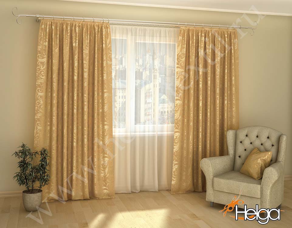 Злата к-т штор (портьера 2 шт 200х270, тюль 500х270)жаккард, органза