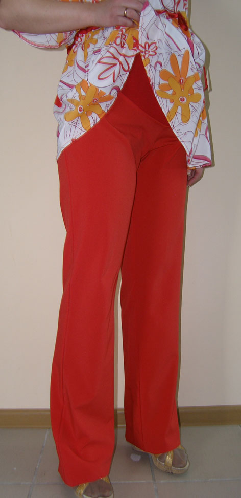Брюки для беременных с трикотажной вставкой для живота. Это очень удобно, когда животик будущей мамочки увеличивается с каждым днём. Проверено на себе. )))