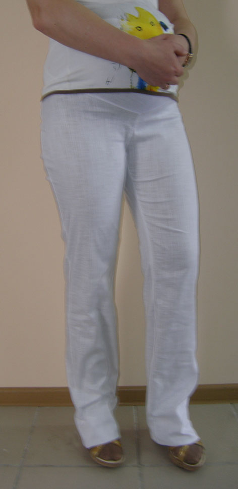 Брюки для беременных с трикотажной вставкой для живота. Это очень удобно, когда животик будущей мамочки увеличивается с каждым днём. Проверено на себе. )))