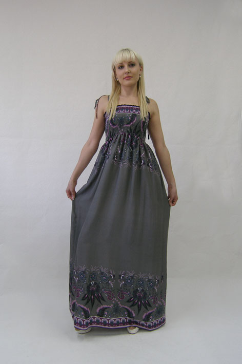Длинное хлопковое платье в пол. С купонным рисунком.
