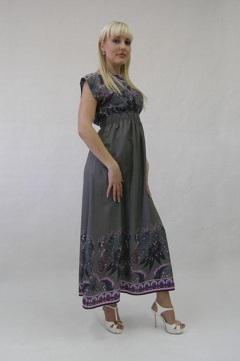 Длинное хлопковое платье в пол. С купонным рисунком.