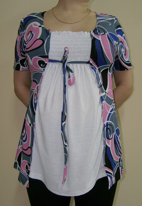 Трикотажная блузка с сборкой на резинку в области груди.