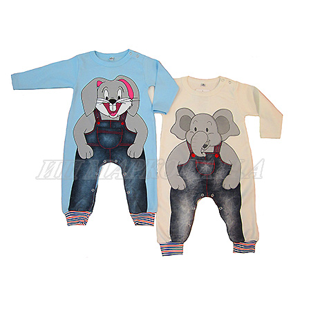Комбинезон детский с печатью, кнопочки на плече и ножках.