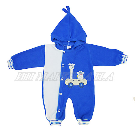 Комбинезон детский с капюшоном, декорирован аппликацией. Застегивается пуговками на всю длину. Трикотажные манжеты на рукавах и штанинах.