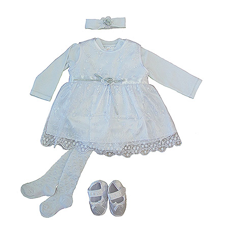 Нарядный белый крестильный костюмчик для маленьких принцесс