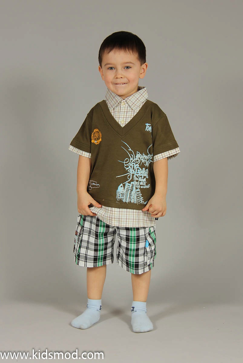 Футболка совмещенная с рубашкой для мальчика, Декорирована надписями.