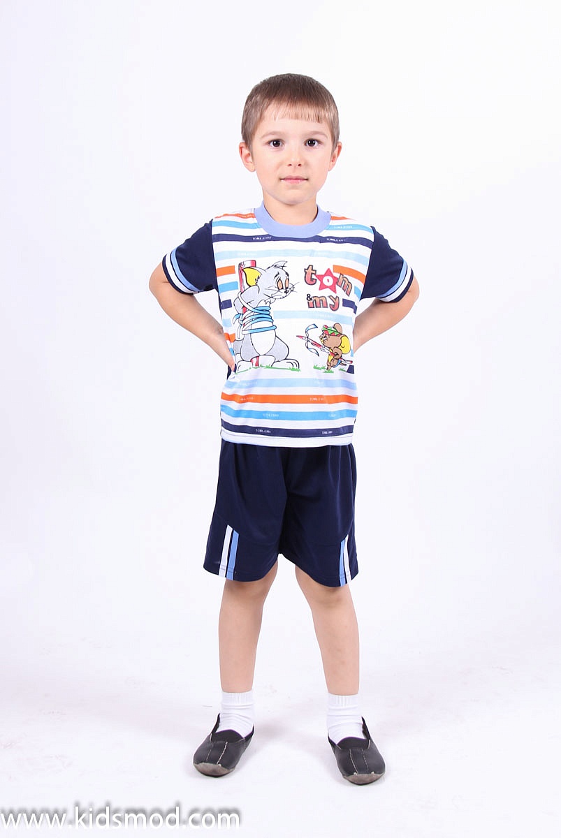 Комплект для мальчика: футболка и шорты. Футболка украшены рисунком "Том и Джерри".
