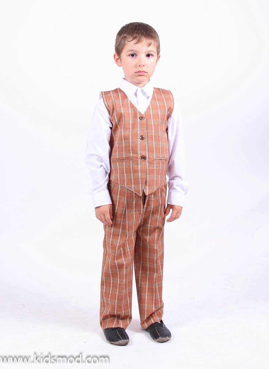 Комплект в клетку для мальчика: жилетка + брюки, жилетка на пуговицах.