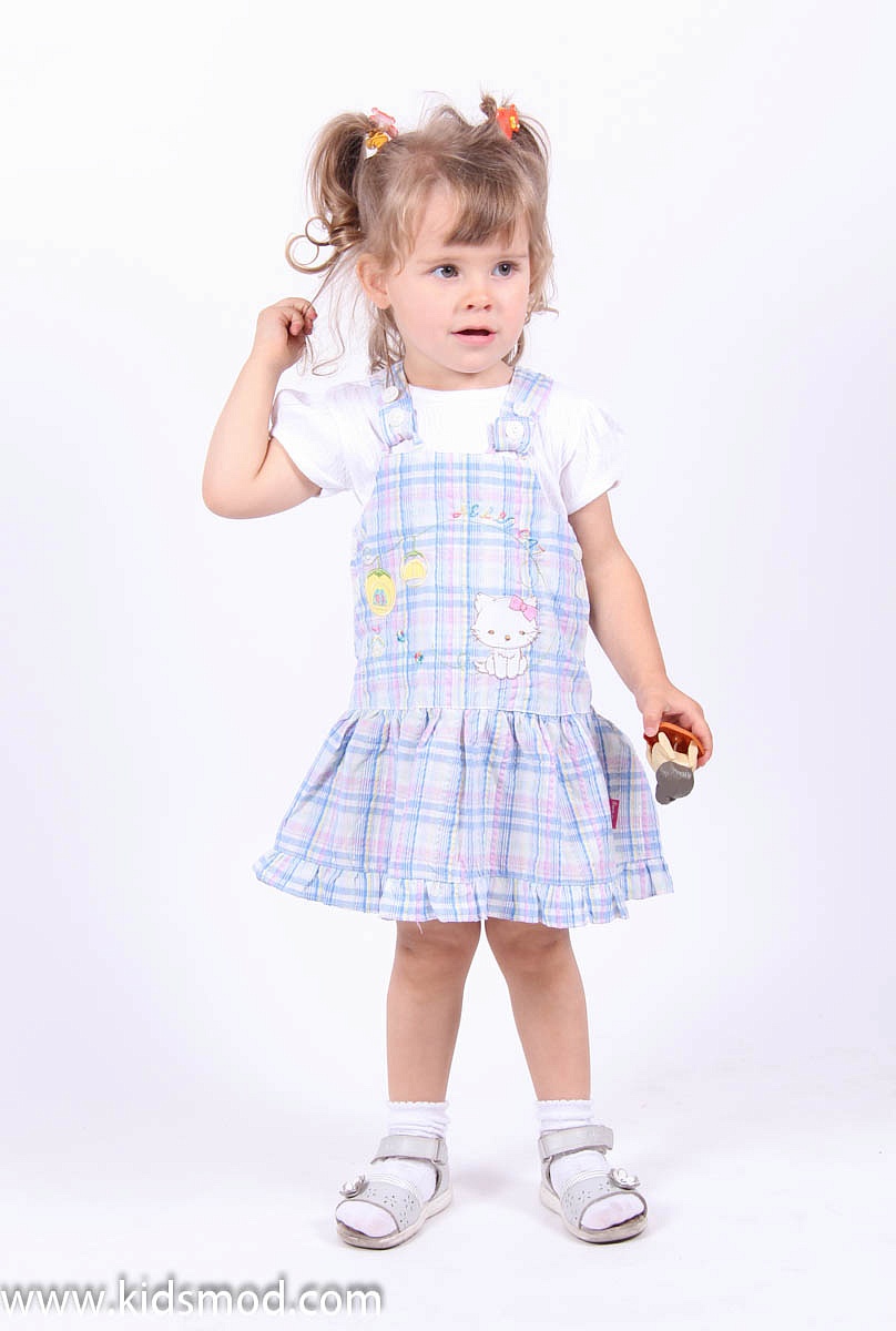Сарафан в клетку с белой футболкой, с вышитым рисунком по центру