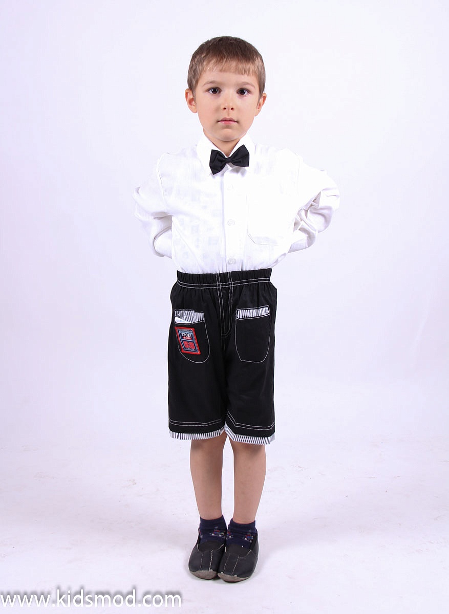 Праздничная рубашка с бантиком на резинке для мальчика, также имеется кармашек на груди.