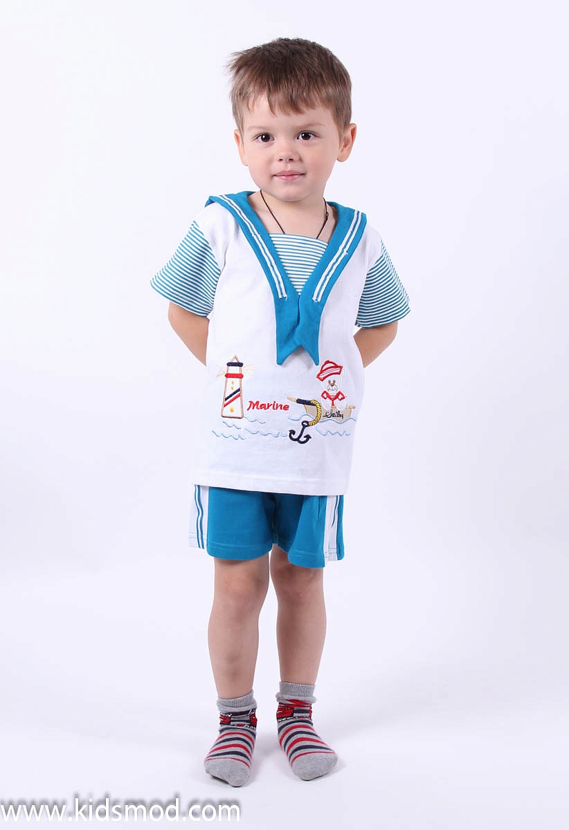Комплект для мальчика на морскую тематику. По центру вышит рисунок.
