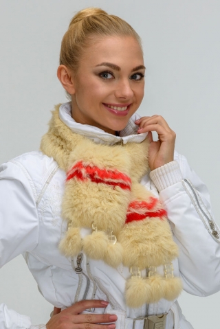 Описание: Классическая форма шарфа, украшен помпонами. Длина 125 см, ширина 12 см.